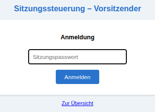 Bevor die eigentliche Sitzung startet muss der GV-Vorsitzende sich nochmals ‚legitimieren‘, damit sicher gestellt ist, dass er der Richtige ist, der sich da anmeldet. War die Anmeldung erfolgreich, dann beginnt die direkte Sitzungssteuerung durch den GV-Vorsitzenden.