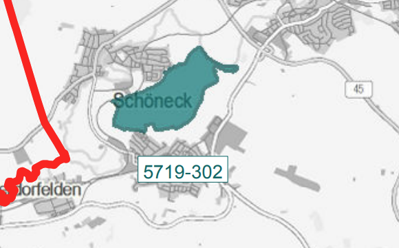 Die Gemeinde 61137 Schöneck besitzt als ‚Körperschaft‘ einen ‚gemeindeeigenen Wald‘ — der auch ein FFH Wald ist (Natura 2000 Wald) — mit einer Fläche von 121,55 ha (angeblich doch nur 81 ha; ist zu klären).[1] Siehe auch die Karte vom EU-Viewer.[2]