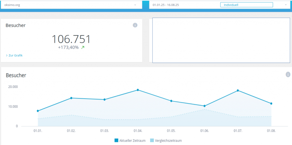 Man kann sehen dass sich die Besucherzahlen verdoppelt haben, obgleich erst 8 Monate vom Jahr 2025 vergangen sind.